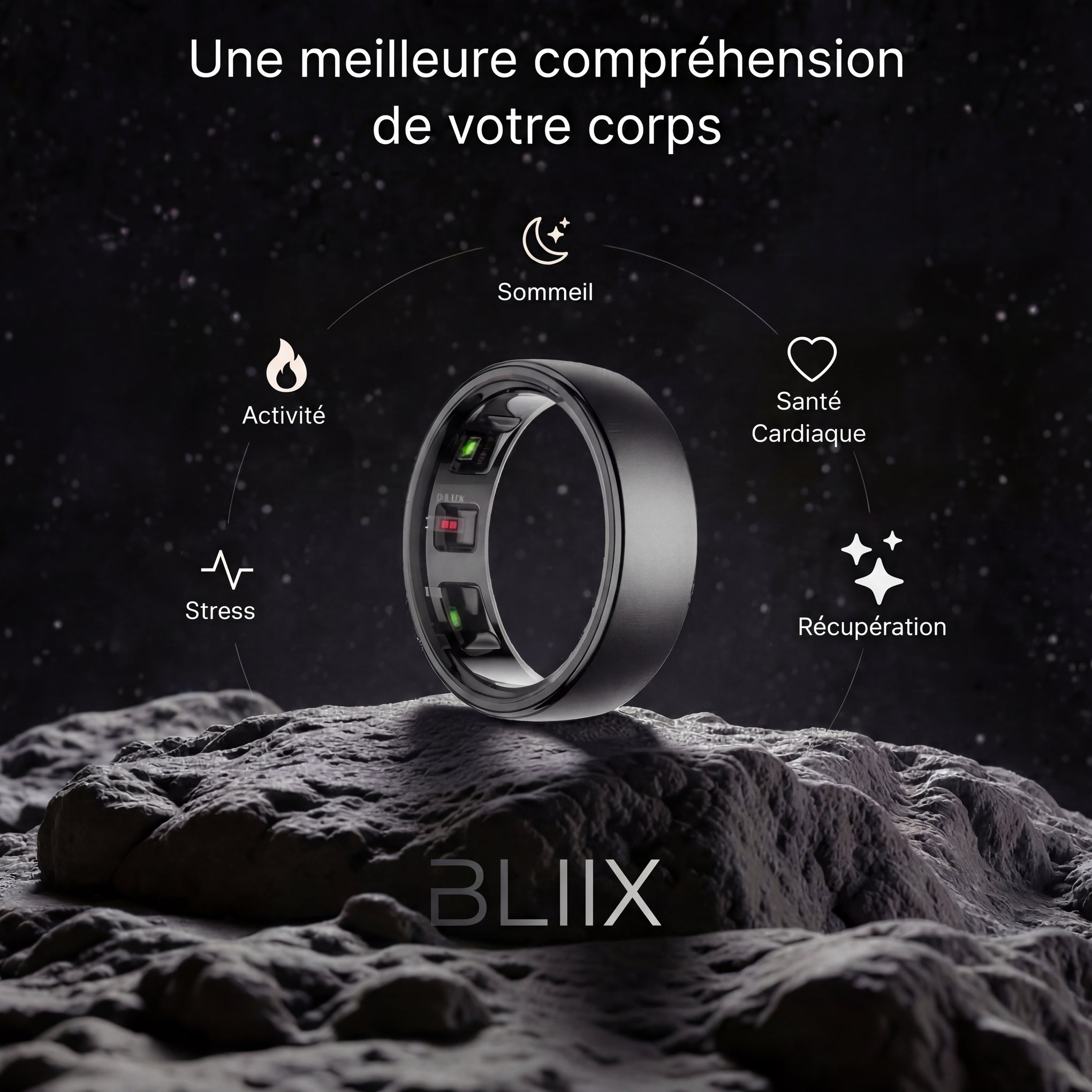 Grâce à ses capteurs de haute précision, la bague suit vos indicateurs clés fréquence cardiaque, sommeil, activités.
